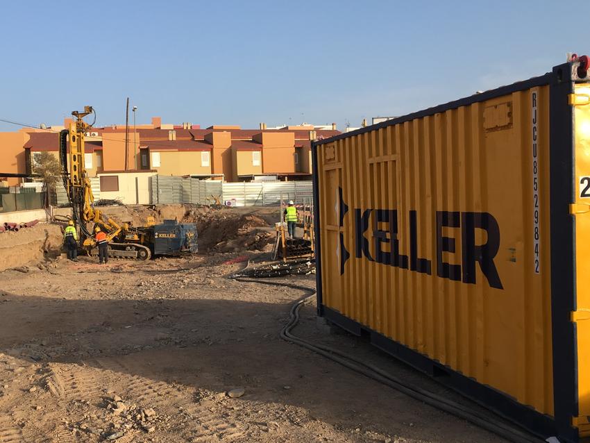 Consistió en una cortina de micropilotes arriostrada en dos niveles mediante anclajes provisionales de tres cables diseñada por el departamento técnico de Keller Cimentaciones.